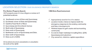 I am pleased as many of those I have met, that we are receiving our fair share of services. The new fire station outline is available below for your information. The site which has been chosen is City owned lands adjacent to the Lakeview Golf Club.