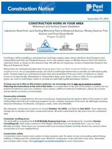 More details are available in the attached notice for affected residents and businesses, which is posted online at Project 19-2215/19-1120 – peelregion.ca